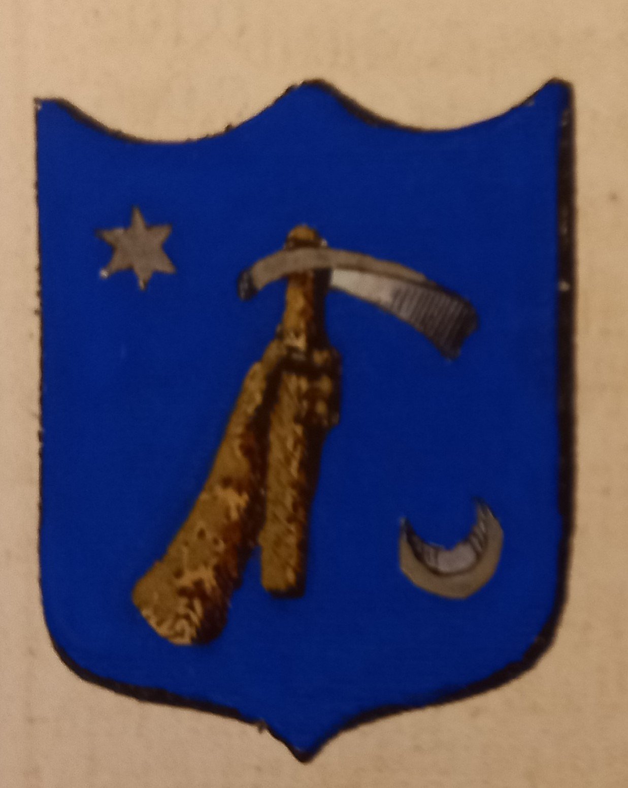 Piccolo stemma comunale colorato a mano d’epoca (cm. 3,8 x 3,2 ca.). Stralcio dal Dizionario Corografico illustrato dell’Italia, edito a Milano nel 1868. Ogni stemma di questa raccolta è inserito in una o più pagine di testo con la descrizione della località, notizie storico - geografiche e statistiche (numero degli abitanti e degli elettori, guarnigioni della Guardia Nazionale, ecc.). Spesso il testo è redatto da studiosi locali o dai sindaci, con maggiori, interessanti notizie.