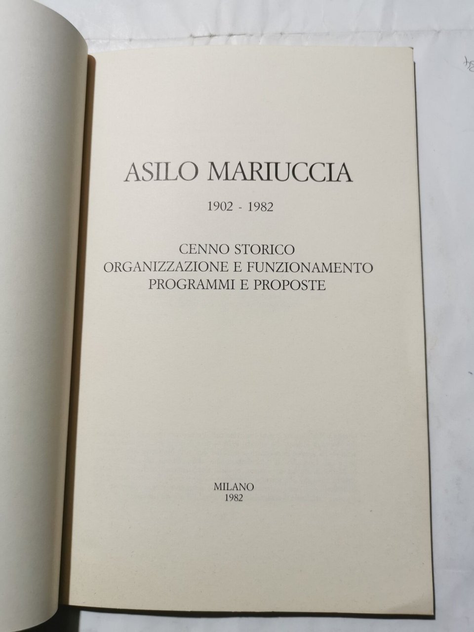 Asilo Mariuccia 1902- 1982 - Cenno storico, organizzazione e funzionamento, programmi e proposte