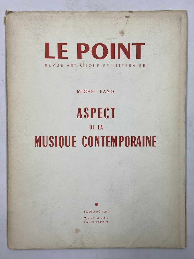 ASPECT DE LA MUSIQUE CONTEMPORAINE. Le Point Revue Artistique et Littéraire XLVII Mars 1954.