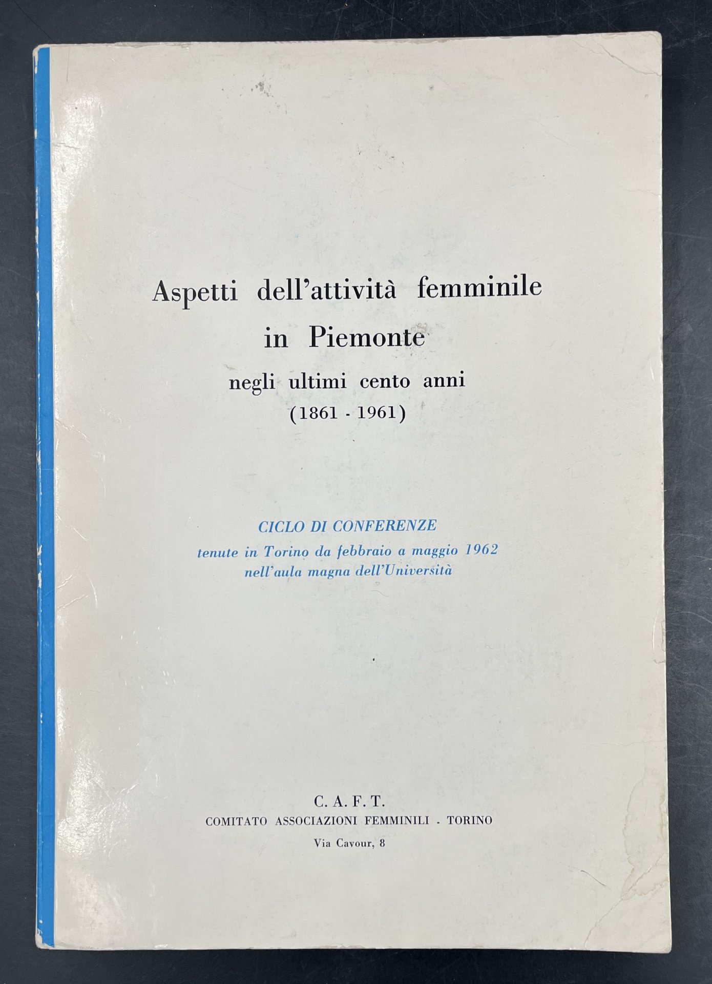 Aspetti dell'ATTIVITÀ FEMMINILE in PIEMONTE negli ultimi cento anni (1861-1961). Ciclo di conferenze tenute a Torino da febbraio a maggio 1962 nell'aula magna dell'Università.