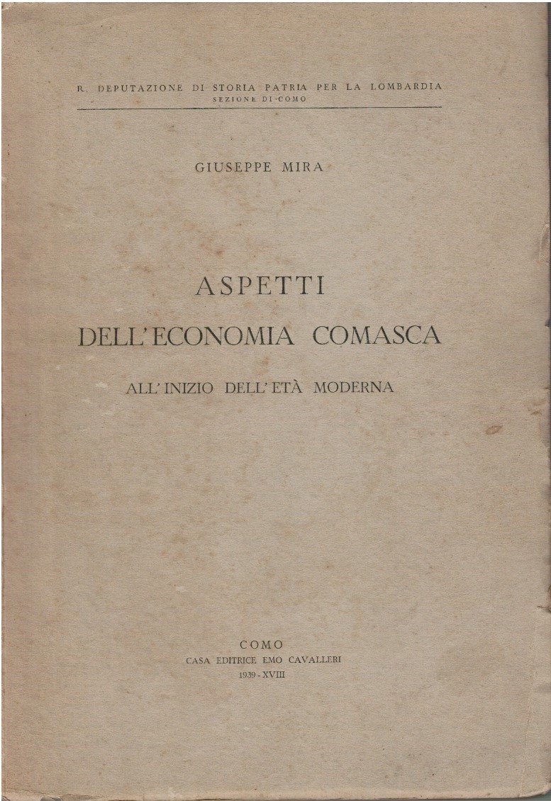 Brossura con tracce del tempo, parte posteriore scollata, parzialmente intonso, dedica in bella grafia datata 1940. Interessante trattato sull'economia comasca del XV secolo. Copia piu' che accettabile