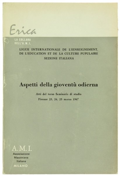 ASPETTI DELLA GIOVENTU' ODIERNA. Atti del 3° Seminario di studio - Firenze 23, 24, 25 marzo 1967.