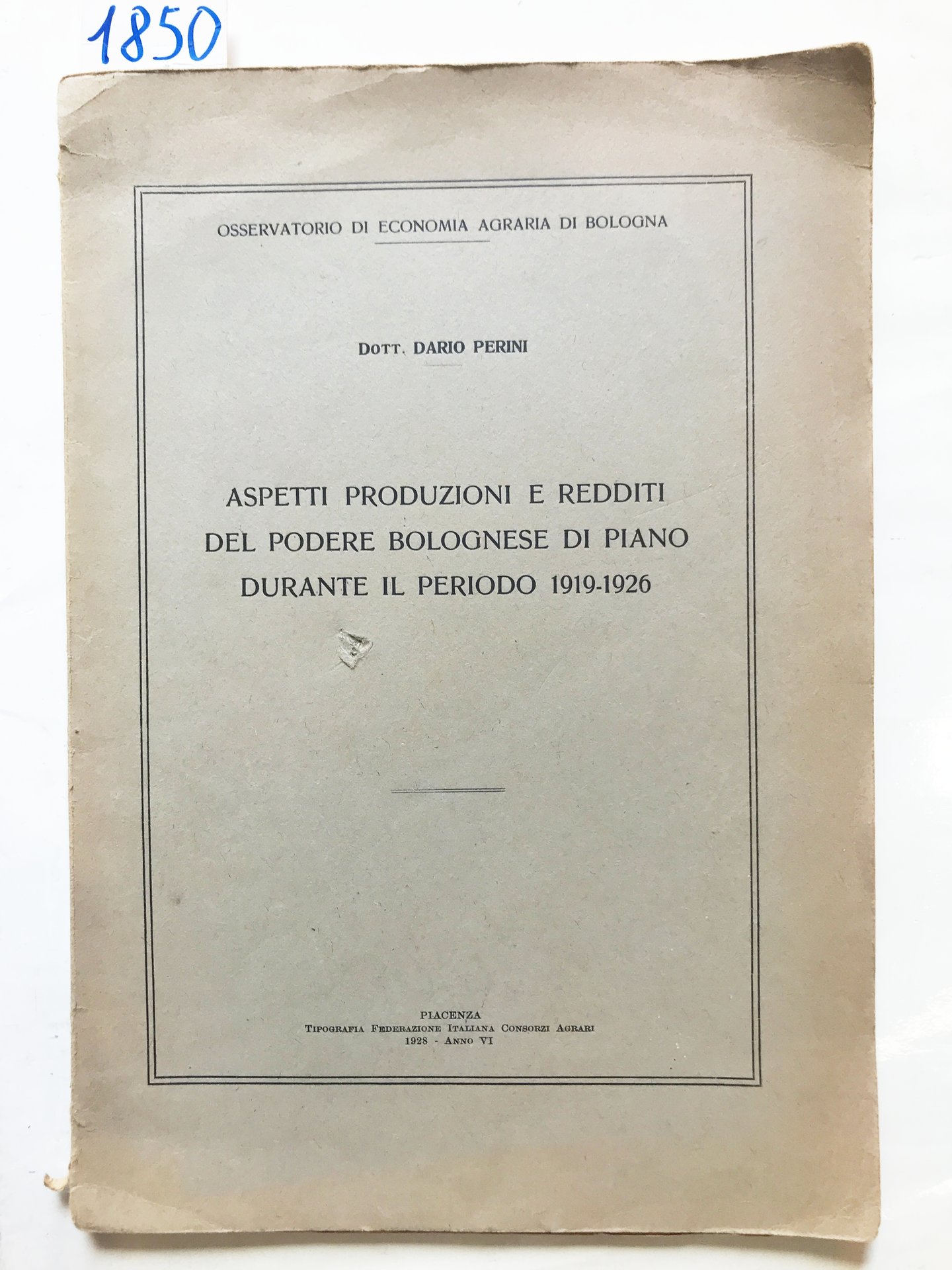 ASPETTI PRODUZIONI E REDDITI DEL PODERE BOLOGNESE DI PIANO DURANTE IL PERIODO 1919-1926.