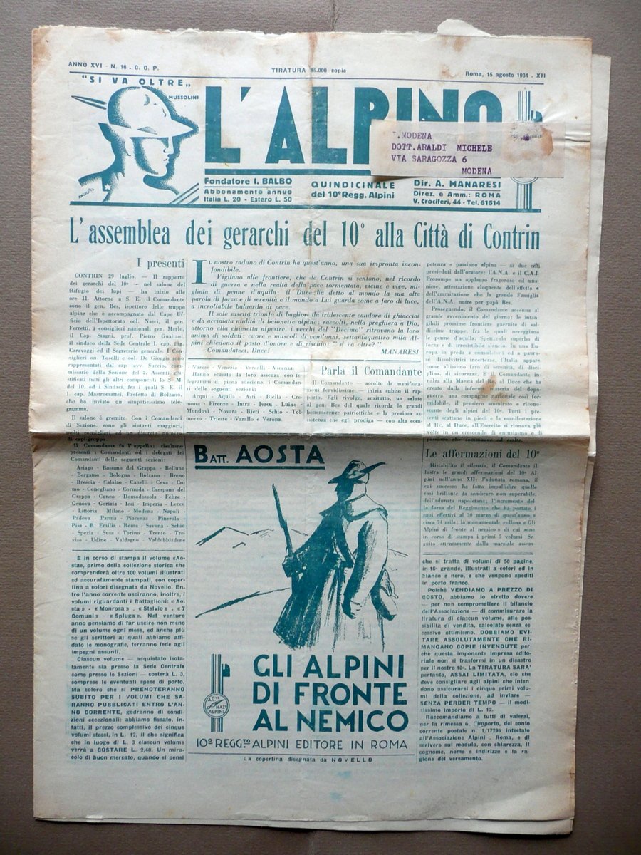 Assemblea Gerarchi 10∞ Citt‡ di Contrin L'Alpino Anno XVI Roma 15/8/1934