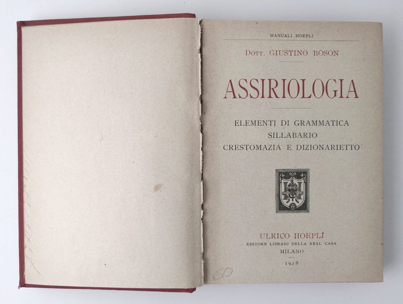ASSIRIOLOGIA di Giustino Boson 1918 Hoepli Libro Manuale elementi grammatica