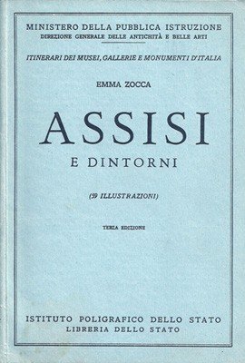 Guida artistica d'epoca su Assisi e dintorni, pubblicata nel 1960 dall'Istituto Poligrafico dello Stato - Libreria dello Stato, con numerose foto in bianco e nero di luoghi di interesse storico-artistico e opere d'arte, una cartina ripiegata della città.