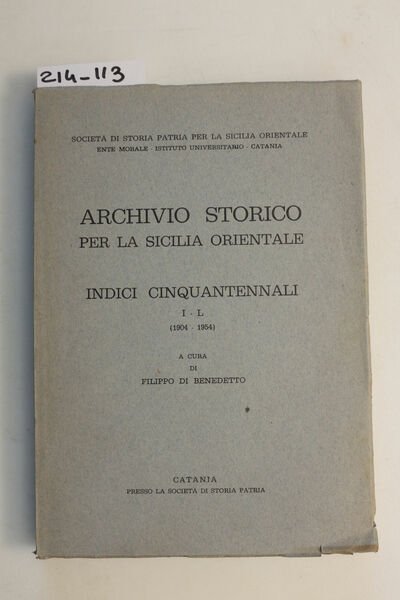ASSO - Società di Storia Patria per la Sicilia Orientale - Indici cinquantennali 1904-1954 - dalla lettera I alla lettera L