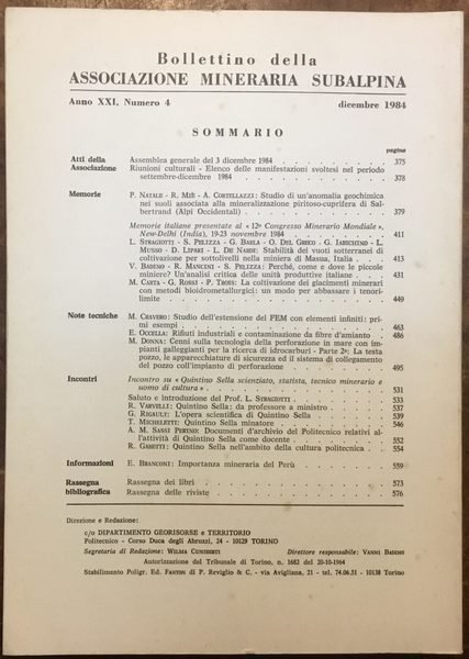 Associazione Mineraria Subalpina. Bollettino. Anno XXI Numero 4, dicembre 1984