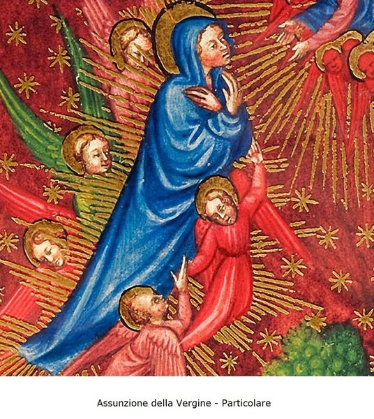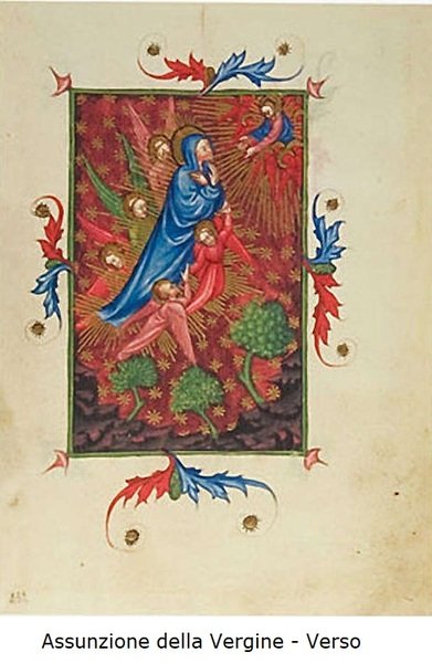 Dal “Libro d’Ore Modena” pagina miniata che rappresental'Assunzione della Vergine Maria.