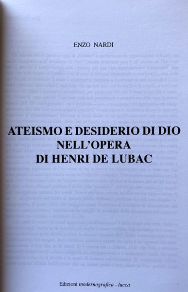 ATEISMO E DESIDERIO DI DIO NELL'OPERA DI HENRI DE LUBAC