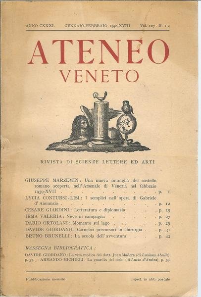 ATENEO VENETO - GENNAIO - FEBBRAIO 1940 - VOL. 127 - N. 1-2