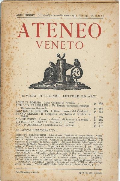 ATENEO VENETO - OTTOBRE - NOVEMBRE - DICEMBRE 1943 - VOL. 130 - N. 11-12- 13 -