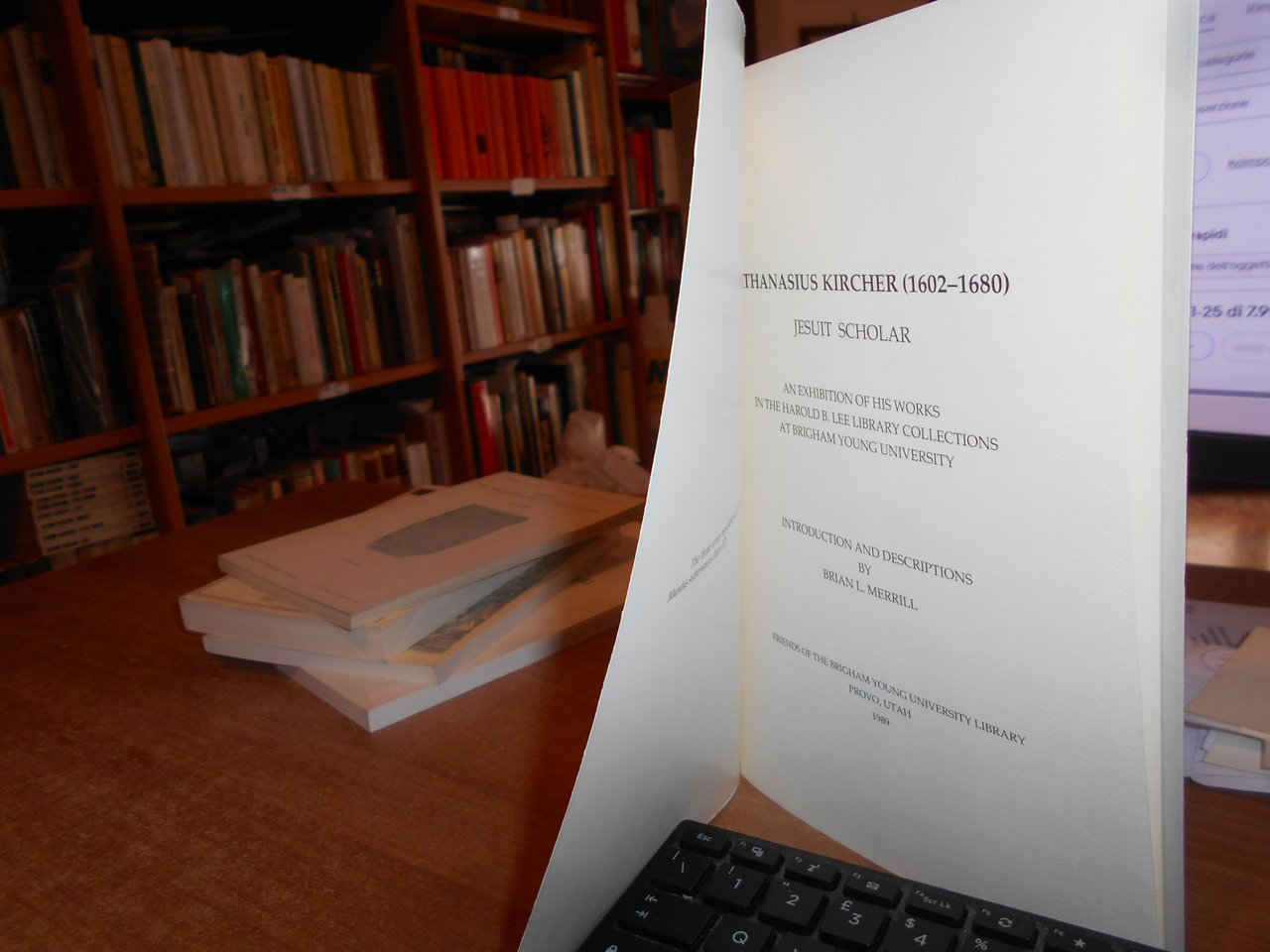 JESUIT SCHOLAR. Provo, Utah, 1989. ATHANASIUS KIRCHER (1602 - 1680). An Exibition of his works in the Harold B. Lee Library collections at Brigham Young University. Introduction and descriptions by Brian L. Merrill. In-8°, br. xxxviii, 74 pp. con numerose riproduzioni/illustrazioni n.t. Come nuovo. Neg. mob. S