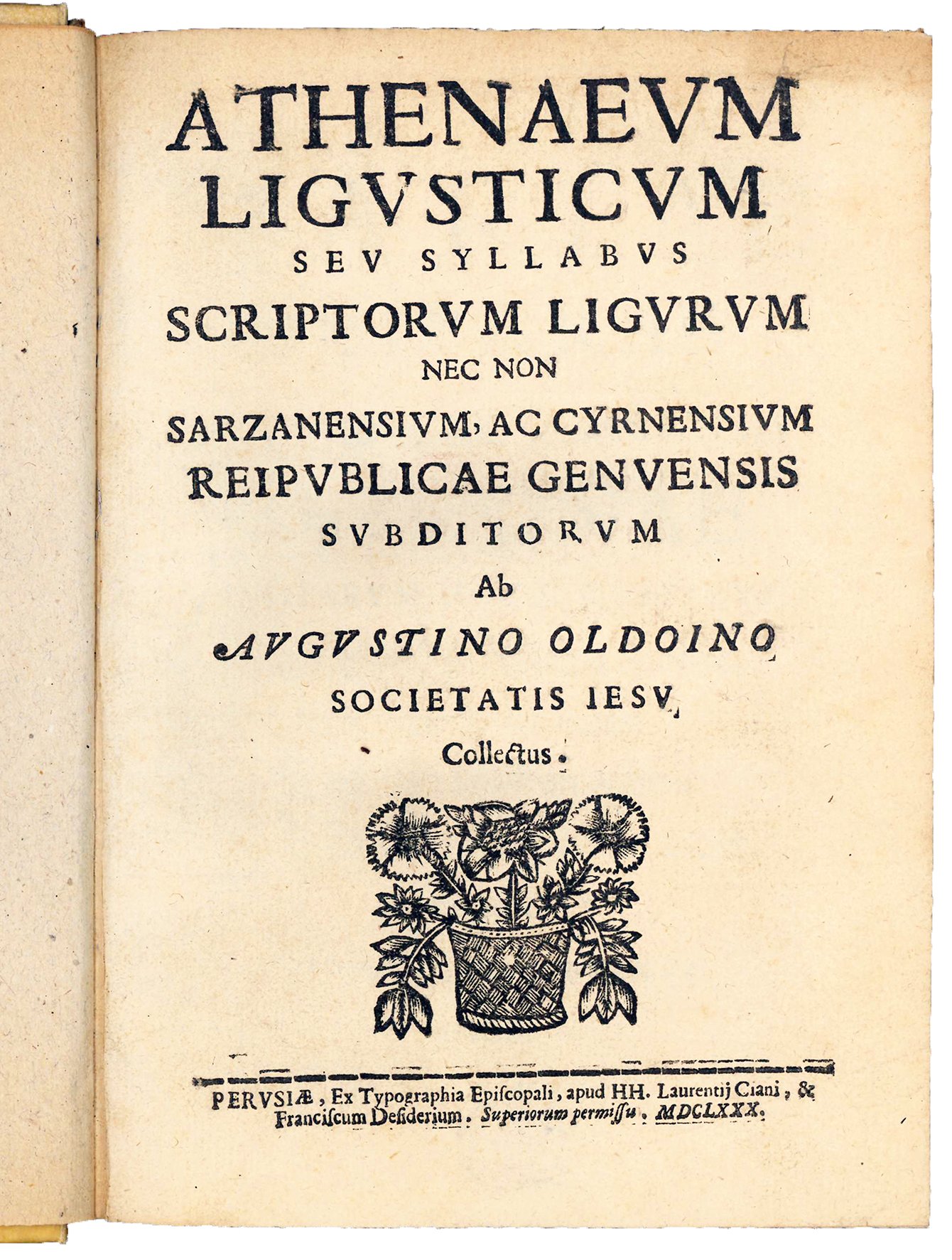 Athenaeum ligusticum, seu Syllabus scriptorum Ligurum nec non Sarzanensium, ac Cyrnensium reipublicae Genuensis subditorum ab Augustino Oldoino, Societatis Iesu, collectus