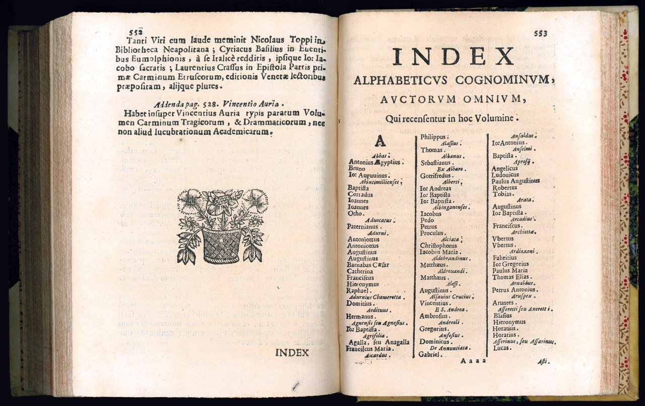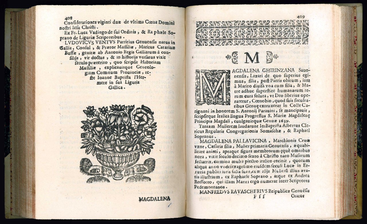 First edition, dedicated to Cardinal Giannicolò Conti (1617-1698), archibishop of Ancona. The work opens with an introduction, Nostrae Liguriae delineatio, which traces the territorial boundaries of the region and then establishes the criteria for selecting the authors quoted, who number about one thousand seven hundred. Liguria here is obviously understood to mean the Republic of Genoa, which at the time also included the Sarzana area and the island of Corsica (cf. L. Balsamo, La bibliografia, Florence, 1992, p. 61).