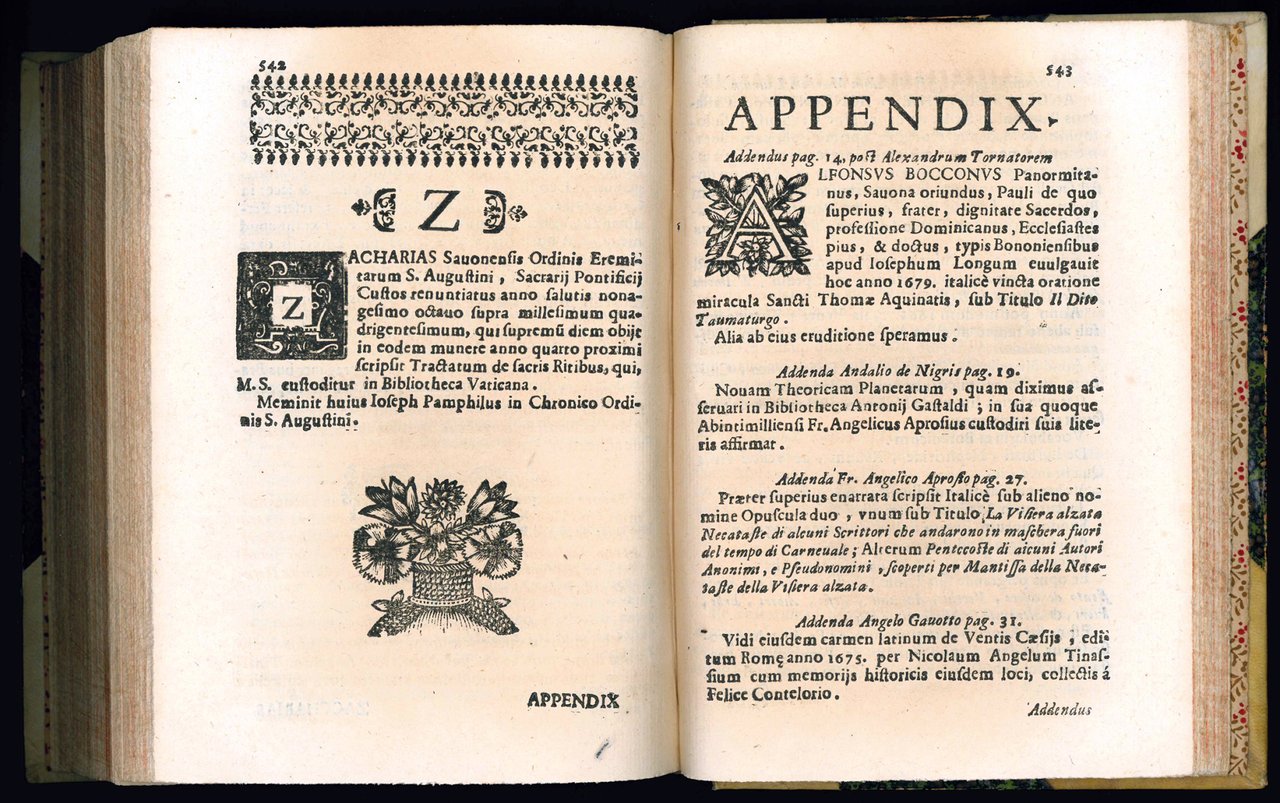 C. Frati, Dizionario bio-bibliografico dei bibliotecari e bibliofili italiani, Florence, 1933, pp. 417-418. BMSTCItalian-17th cent., p. 626. De Backer-Sommervogel, V, 1880-1881. Bibl. Vinciana, 3611. Lozzi, 2277. Bestermann, 2333-2334. C. Starace, Bibliografia della Corsica, Rome, 1943, p. 703, no. 7271; Italian Union Catalogue, IT\ICCU\TO0E\007632.