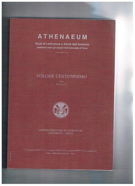 Athenaeum studi di letteratura e storia dell'antichità. Vol. 101 (2013) fasc. I°. Epeios in Greece and Italy; il Protagora platonico, Esiodo e la genesi dell'uomo; Alessandro IV e la tomba III del "Grande Tumulo" di Vergina; per una lettura giuridica della Rudens di Plauto; sulle fonti del canone delle artes di Vitrivio; ecc. Art. anche in altre lingue.
