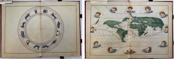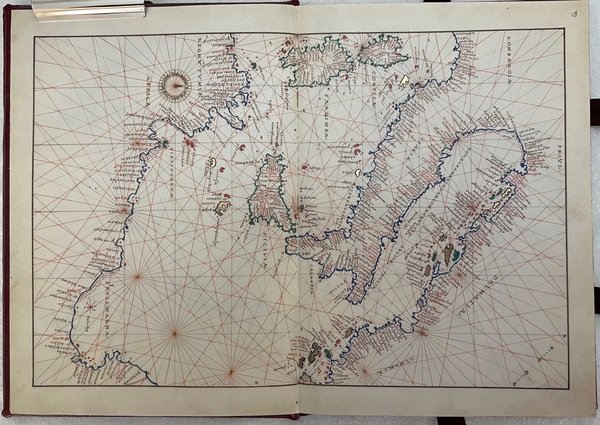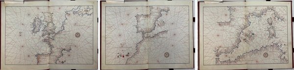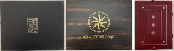 Atlante dei Mondi di Battista Agnese (Atlas of the Worlds by Battista Agnese). Biblioteca Queriniana di Brescia (codice I.III.24). ArtCodex. Manoscritto con nove carte nautiche, un planisfero e una mappa dello zodiaco. Le carte, in doppia pagina, rappresentano : lo Zodiaco, l’America, l’Oceano Atlantico, l’Oceano Pacifico, il Canale della Manica, il Mediterraneo Occidentale, il Mediterraneo Centrale, l’Italia, il Mediterraneo Orientale, il Mar Nero, il Globo terrestre e i venti. Legatura in cuoio rosso, con impressioni in oro. Formato 17x24 cm. Pagine 26 (13 carte). Cofanetto di custodia in legno scuro, con impressioni in oro. Tiratura limitata e numerata di 999 copie. Condizioni ottime. Manca Commentario.