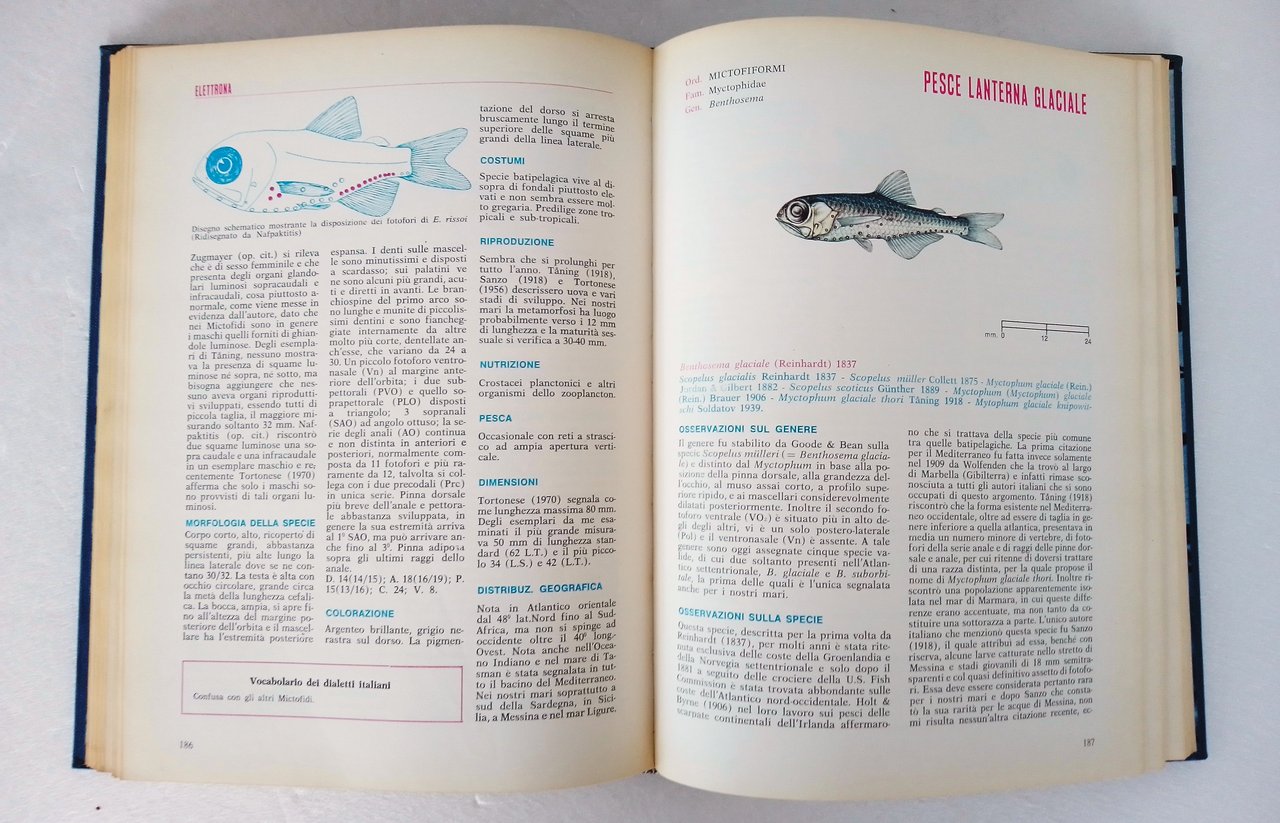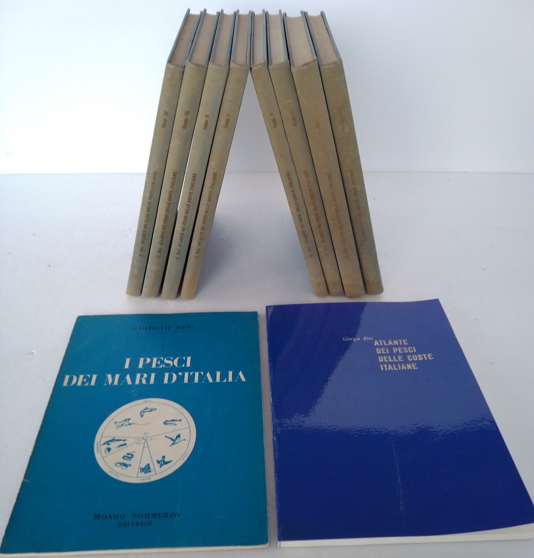9 Volumi (mm.290x215), pagg.250 circa cadauno. Legature editoriali rigide in tela blu con titoli in oro per gli 8 volumi, legatura in cartonato editoriale blu per il nono volume. Monumentale opera in ottimo stato di conservazione riccamente illustrata in nero ed a colori. Uniamo sempre del Bini il testo I Pesci dei Mari d’Italia in cartonato editoriale a stampa e ben tenuto.