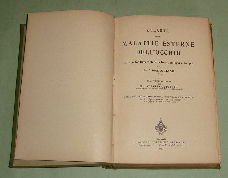 Traduzione italiana del Dr. Alfonso Cattaneo sulla seconda edizione tedesca notevolmente aumentata con 80 figure colorate su 48 tavole e 7 figure nel testo. Milano, Società Editrice Libraria, 1904. In 16mo; pp.XV, 1 bianca, 252. Tela editoriale verde, titolo in nero al piatto anteriore ed al dorso.