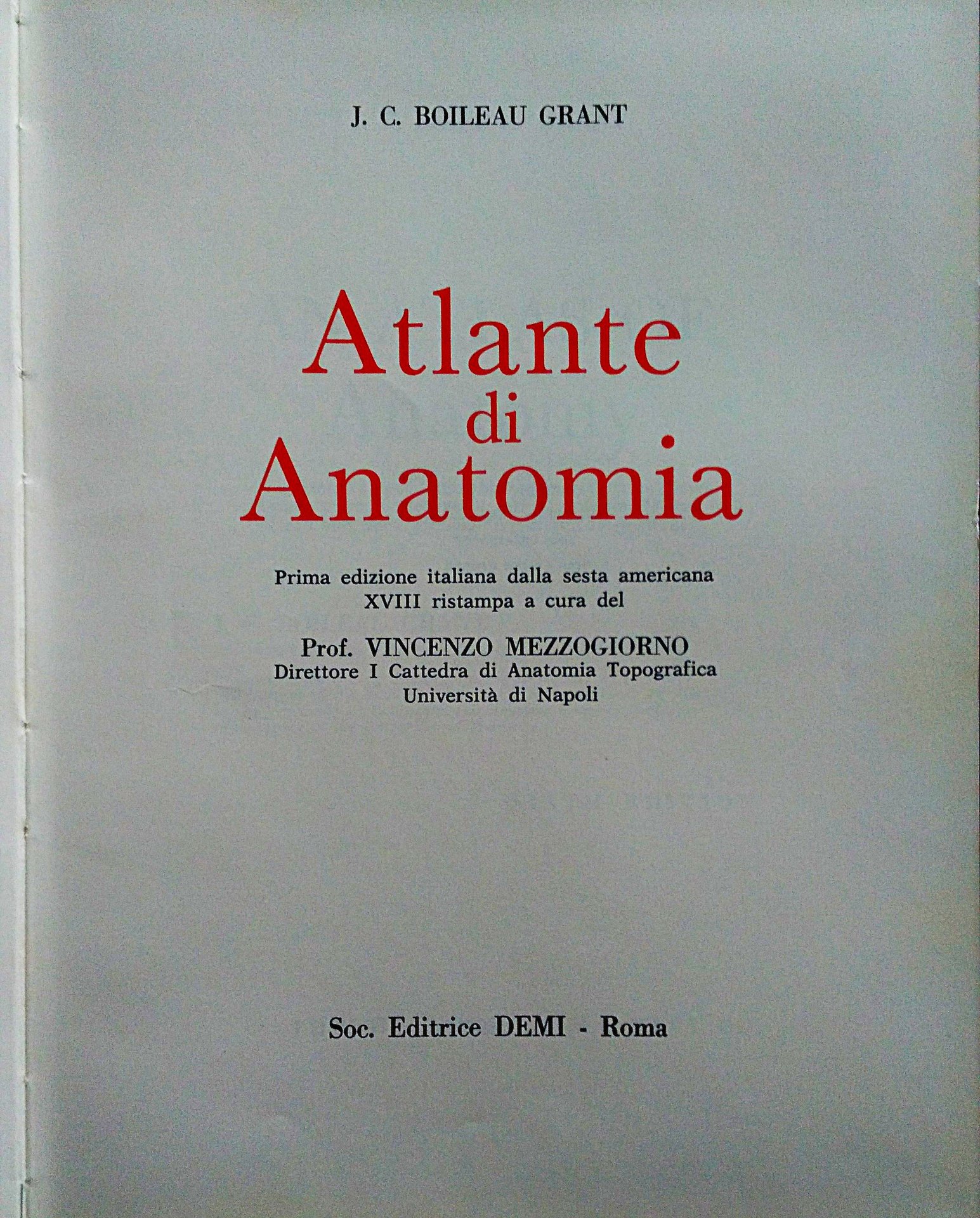 Atlante di anatomia. Prima edizione italiana dalla sesta americana...a cura del Prof. Vincenzo Mezzogiorno.