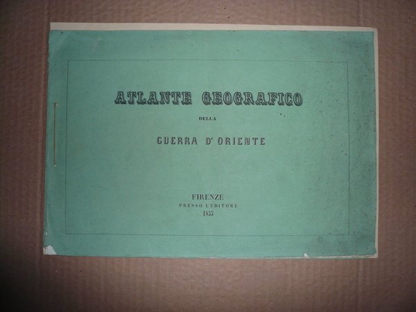 IN 8° OBLUNGO ( cm.26,5 X 39, 1 CARTA CON NOTIZIE STATISTICHE INTORNO ALLE POTENZE BELLIGERANTI + c.5 COSI' RIPARTITE : a) PIANTA DI SEBASTOPOLI CON LE SUE FORTIFICAZIONI BATTERIE E PORTATA DEI SUOI CANNONI .b) PIANTA DELLA CRIMEA.<BR> c) PIANTA DELLA GUERRA DEL DANUBIO. d) PIANTA DELLA GUERRA IN ASIA. e) PIANTA DI KRONSTAD CON SUE FORTIFICAZIONI, BATTERIE E PORTATA DEI SUOI CANNONI. f) PIANTA<BR>DELLA GUERRA DEL NORD. LE CARTE, SONO DELLA LITOGRAFIA BALLAGNY in b/n. COPERTINA EDITORIALE IN BROSSURA VERDE CON TITOLO. INTERESSANTE ATLANTE SULLA GUERRA DI CRIMEA ( 1854 - 55 ), CAUSATA DALLE MIRE ESPANSIONISTICHE DELLA RUSSIA ZARISTA VERSO I BALCANI, ED ALLO SBOCCO DELLE NAVI RUSSE SUL MAR NERO, CONTRASTATE DA UNA COALIZIONE DI STATI EUROPEI ALLEATI DELL'IMPERO OTTOMANO TRA CUI REGNO UNITO, FRANCIA E REGNO DI SARDEGNA.NEL MARZO DEL 1854, LA REGINA VITTORIA E NAPOLEONE III, DICHIARAVANO UFFICIALMENTE GUERRA ALLA RUSSIA. ANCHE IL REGNO DI SARDEGNA SI UNI' ALL'IMPRESA : IL PRESIDENTE DEL CONSIGLIO CAVOUR CONSIDERAVA L'INTERVENTO UN BUON TRAMPOLINO DI LANCIO PER ENTRARE A FAR PARTE DEL GIOCO POLITICO EUROPEO E, NEL 1855 INVIO' UN CORPO DI SPEDIZIONE CAPEGGIATO DAL GENERALE ALFONSO LAMARMORA. NEL 1856, SEBASTOPOLI CADDE. AL CONGRESSO DI PARIGI LO ZAR ALESSANDRO II, ACCETTO' IL PRINCIPIO DI NEUTRALITA' SUL MAR NERO.TRACCE DI POLVERE ALLE CARTE ED ALLA BROSSURA, MINIMI SEGNI DEL TEMPO<BR>AL DORSO DELLA BROSSURA NEL PIEDE, ALTRIMENTI OTTIMA CONSERVAZIONE.ID 3373