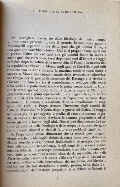 Morte dell'ideologia? Non proprio: l'ideologia deve ricostituire continuamente lo scarto dialettico fra l'essere e il dover essere, esigere che l'uomo vada avanti. Ma un'ideologia che non si commisuri alla realtà può essere un fattore di ritardo, d'involuzione, di alienazione.