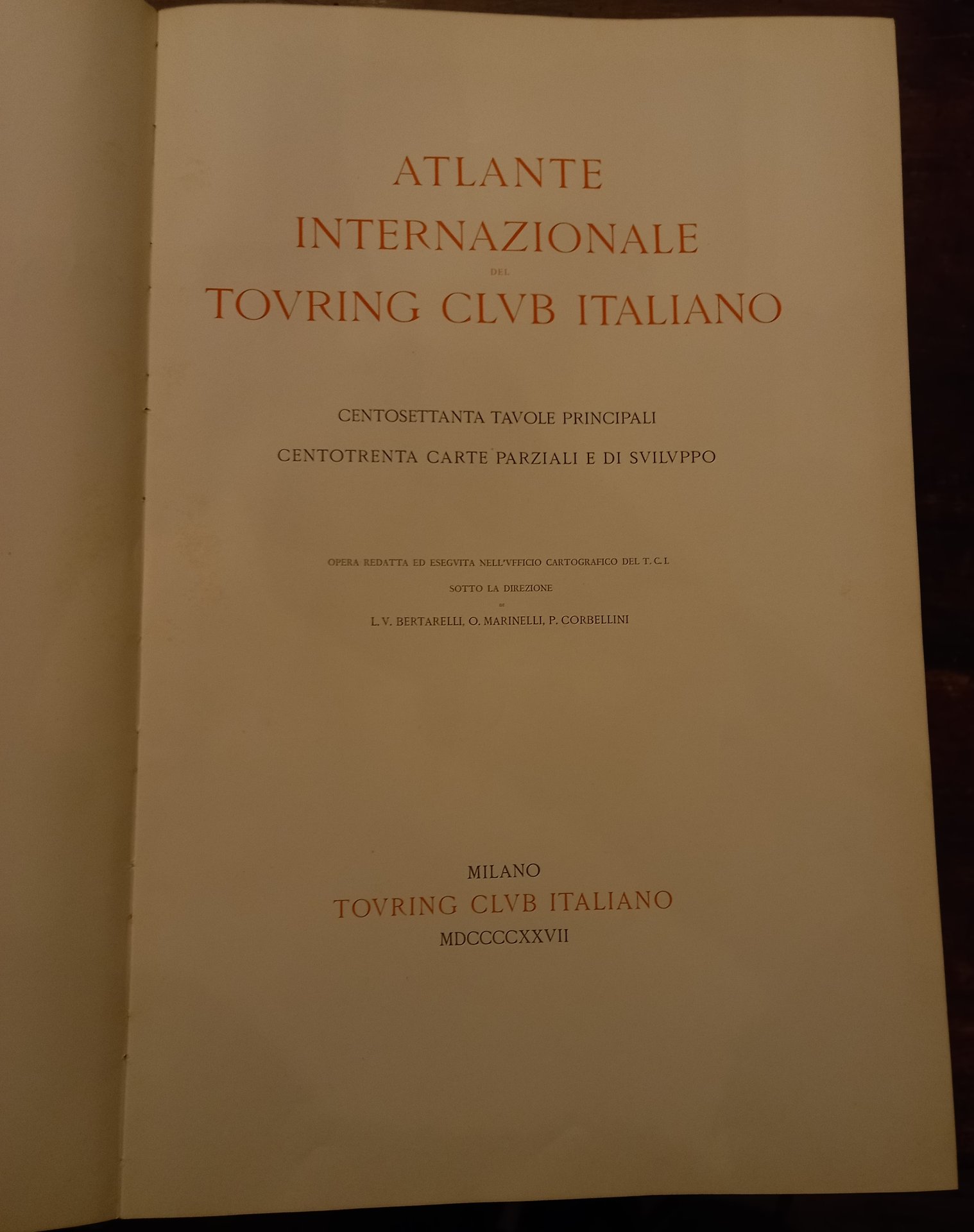 Atlante internazionale del Touring Club Italiano: centosettanta tavole principali, centotrenta carte parziali e di sviluppo. Opera redatta ed eseguita nell'ufficio cartografico del Touring Club Italiano sotto la direzione di L. V. Bertarelli, O. Marinelli, P. Corbellini