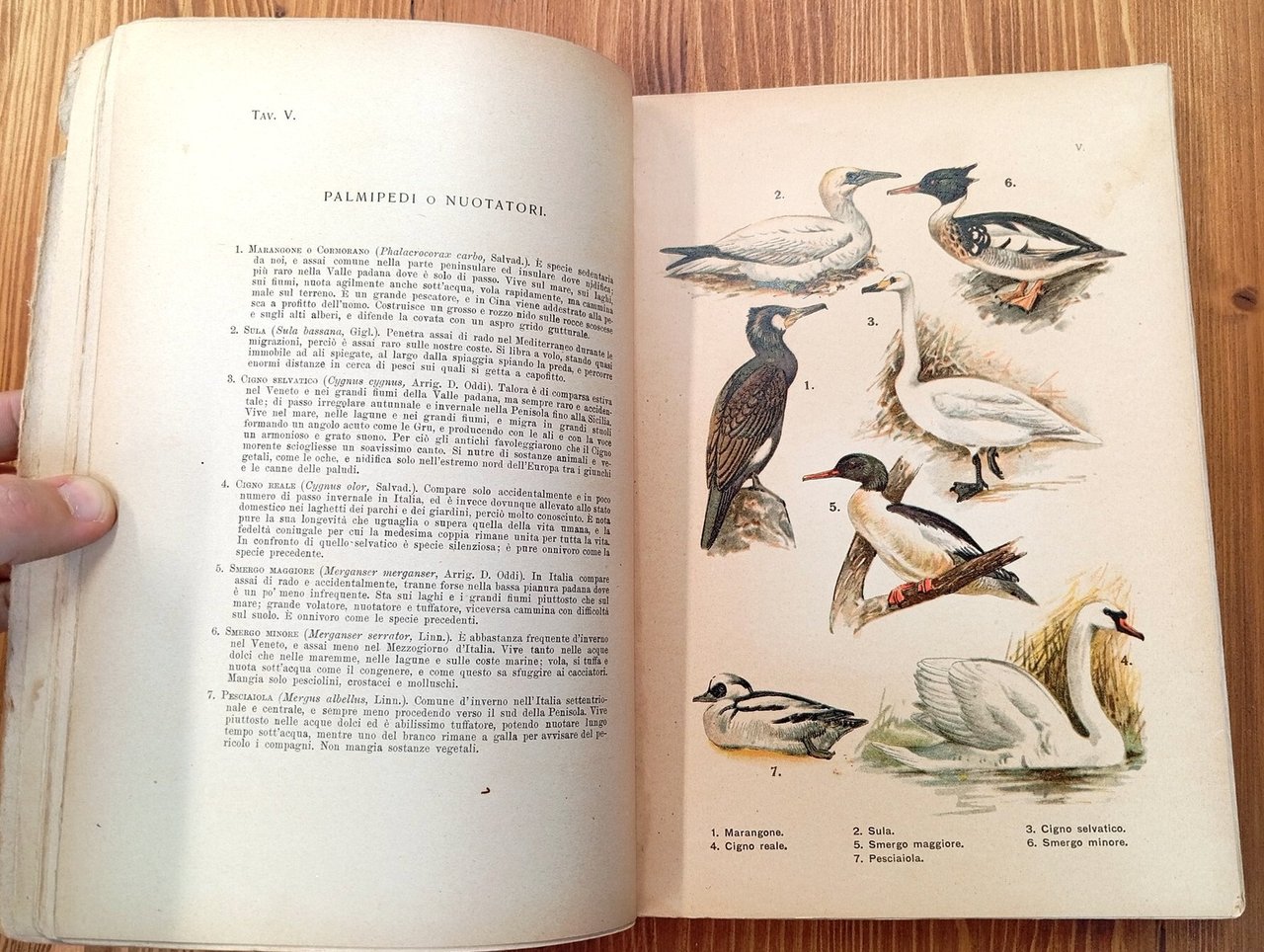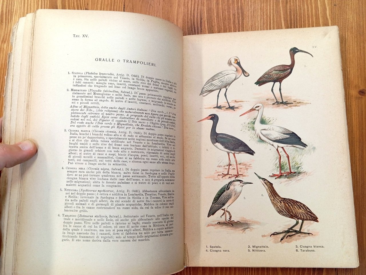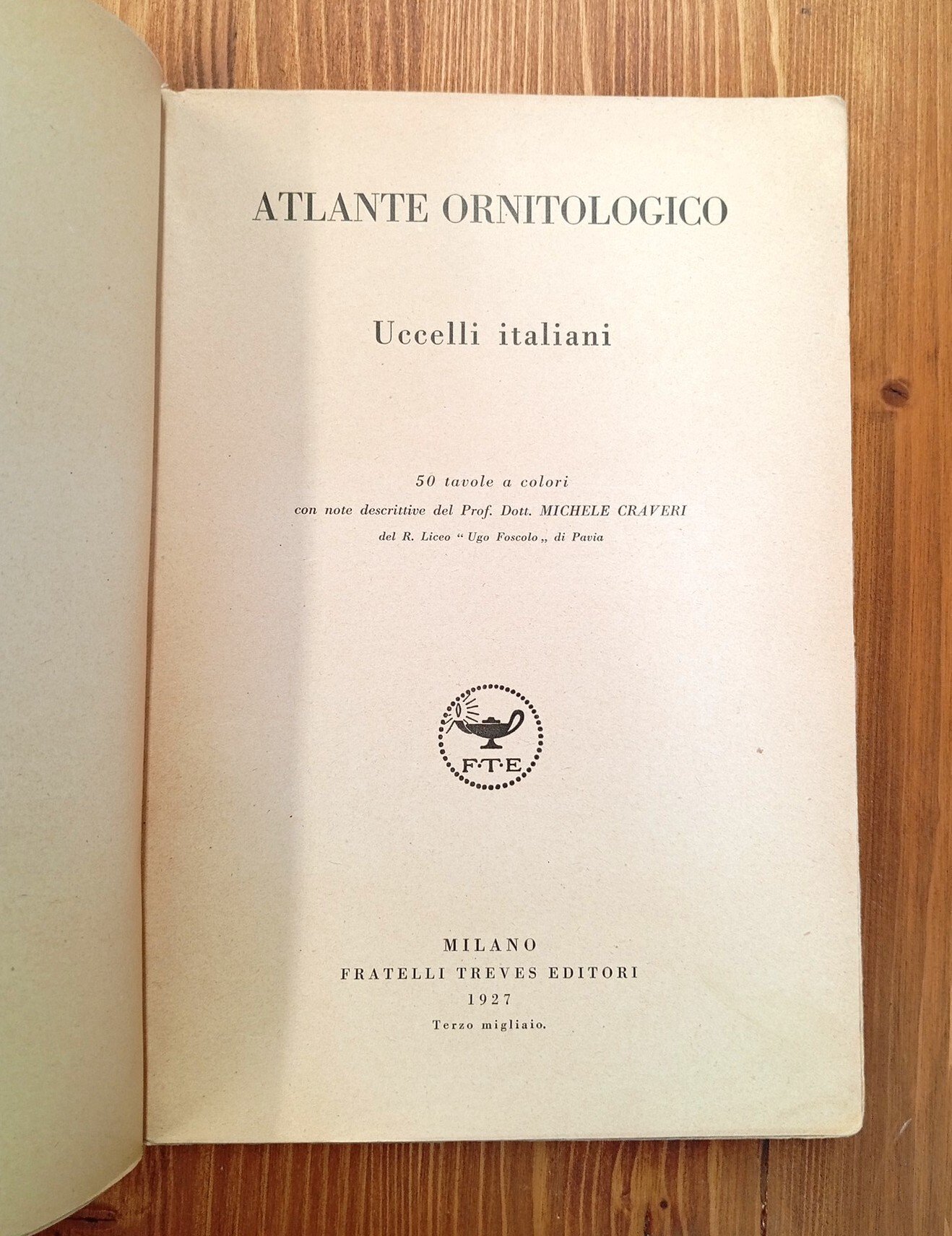 LEGGERE ATTENTAMENTE LA DESCRIZIONE -- Edizione originale, 3° migliaio - Brossura editoriale mancante dei piatti anteriore e posteriore, dorso originale in gran parte mancante e rifatto in tela bianca; XI pagine di avvertenza e d'introduzione cui seguono 50 tavole a colori con ampie didascalie per oltre 300 specie dell'avifauna nazionale. Stampa in cromografia su carta forte. Esemplare da rilegare di un affascinante e ricercato testo di ornitologia.