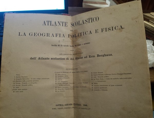 Atlante scolastico per la geografia politica e fisica: scelta di 25 tavole incise in rame e miniate, eseguita sulla quarantesima edizione originale dell'atlante scolastico di Ad. Stieler ed Erm. Berghaus. . - (Torino, Firenze e Roma : libreria di Ermanno Loescher, 1880).