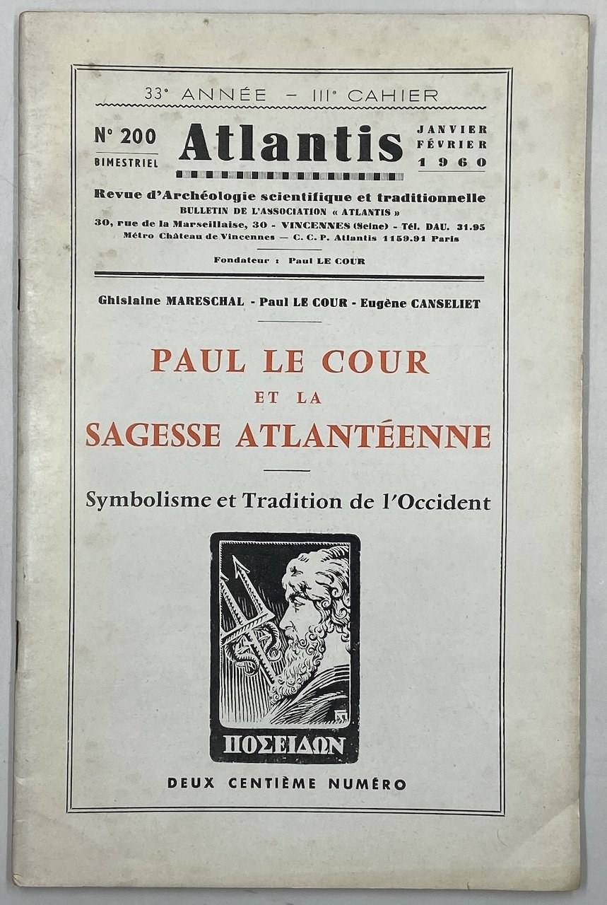 ATLANTIS. Revue illustrée d’archéologie scientifique et traditionnelle. N° 200 Janvier Février 1960. PAUL LE COUR ET LA SAGESSE ATLANTÉENNE. SYMBOLUSME ET TRADITION DE L’OCCIDENT.