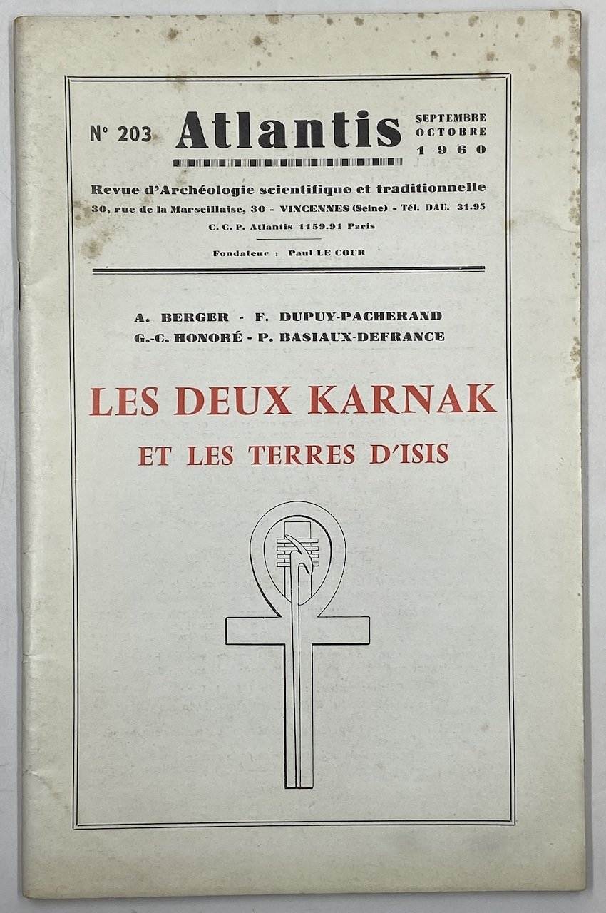 ATLANTIS. Revue illustrée d’archéologie scientifique et traditionnelle. N° 203 Septembre Octobre 1960. LES DEUX KARNAK ET LES TERRES D'ISIS.