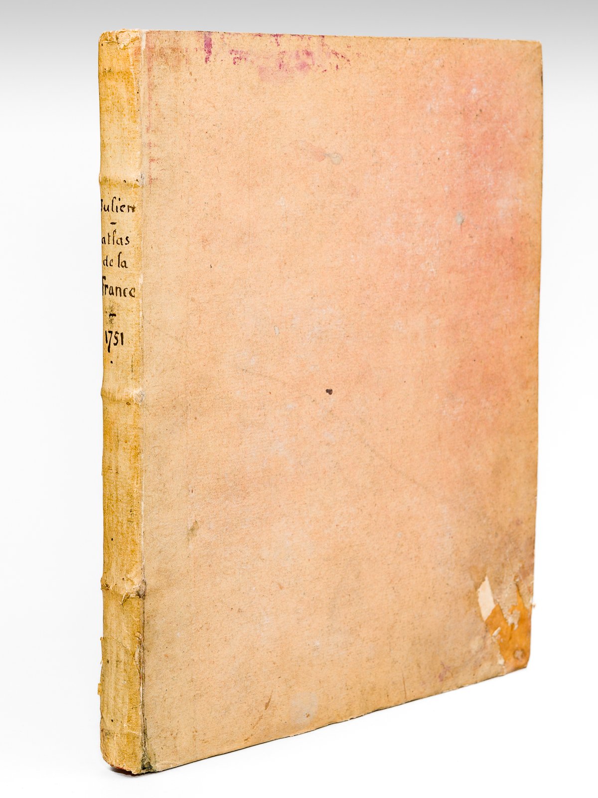 1 vol. in-4 (31,5 x 26 cm en marges) cartonnage ancien, dos à 3 nerfs, Chez R. Julien, à l'Hôtel de Soubise, Paris, 1751, 1 f. double (titre gravé à double page), 24 planches doubles de cartes, frontières rehaussées en couleurs, 3 ff. doubles (tables) Première partie seule de cet atlas, recueillant la "Carte de France et des Etats limitrophes, divisé par Provinces et Gouvernemens Militaires, dressée tant sur les meilleures Cartes particulières qui ont paru jusqu'ici, que sur les Observations de l'Académie Royale des Sciences raportées dans les Cartes des Triangles, Levées par ordre du Roi, et mises au jour par Mr. Cassini de Thury, de l'Académie Royale des Sciences". Les carte et le texte sont montés sur onglet. Etat très satisfaisant (qq. mouill. marginales ou sur le pli central, qq. ff. partiellement débrochés de leur onglet, petites usures au cartonnage, bon état par ailleurs). L'exemplaire provient de la bibliothèque du secrétaire et exécuteur testamentaire des frères Goncourt et de Paul de Saint-Victor, Alidor Delzant (1848-1905), avec son ex-libris manuscrit en garde
