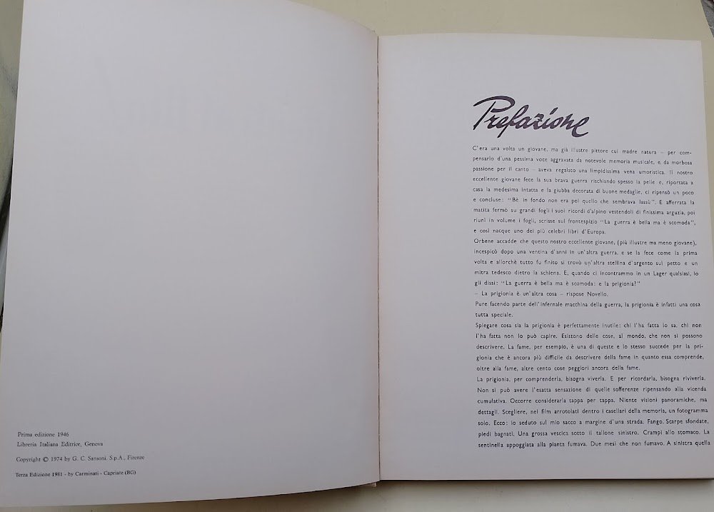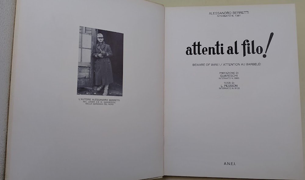 In 4', leg. ed., pp. 135, ill. in n. e col. n.t., prefazione di Guareschi-internato n. 6865, testi di L.Pession-internato n. 6103; firma di Berreti all'occhiello(foto).
