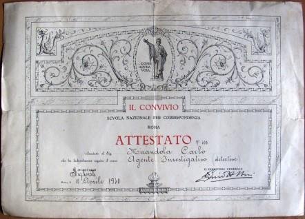 Attestato Di Agente Investigativo (Detective). Il Convivio. Scuola Nazionale Per Corrispondenza