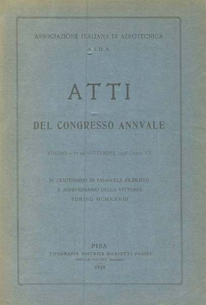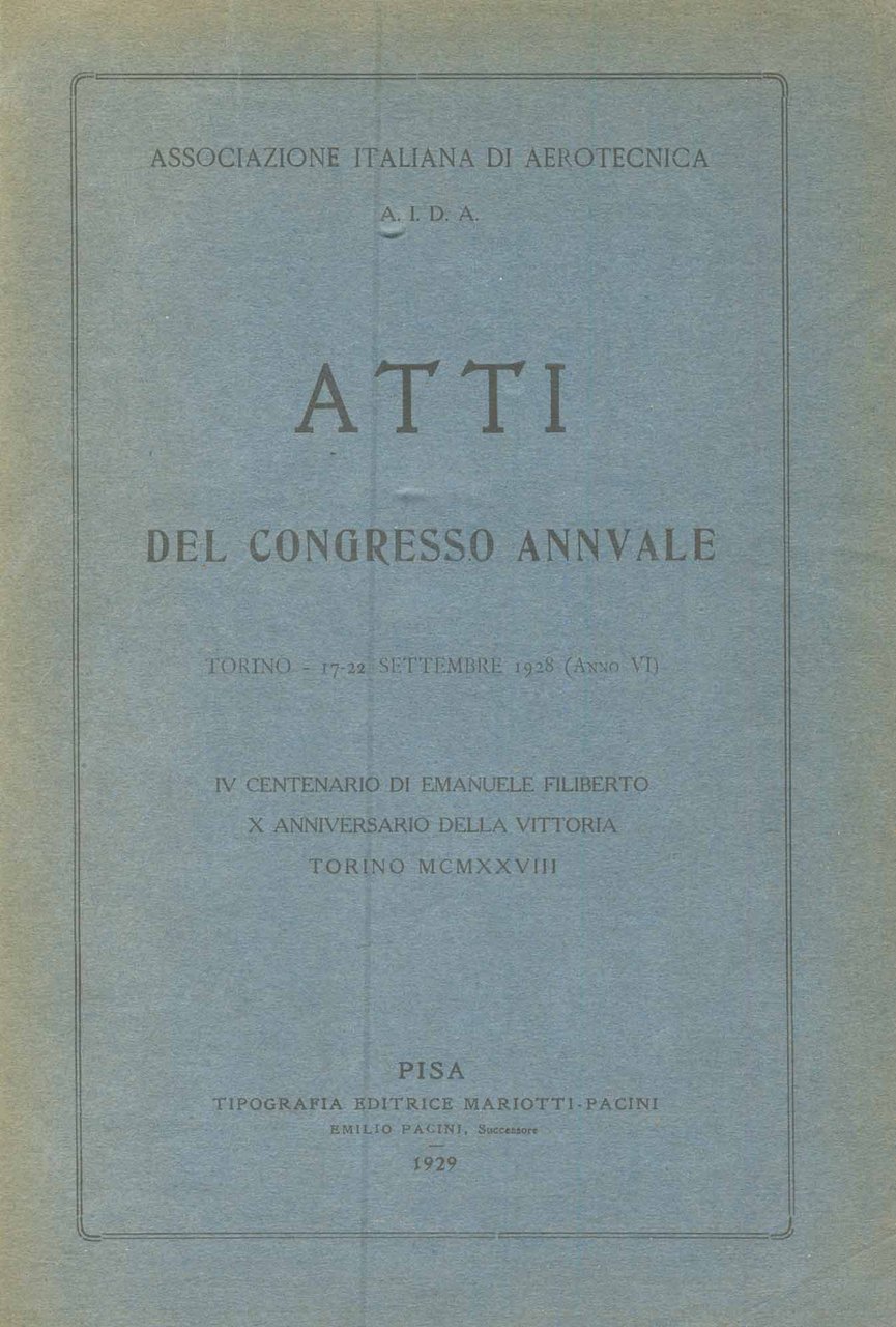 ATTI DEL CONGRESSO ANNUALE DELL'ASSOCIAZIONE ITALIANA DI AEROTECNICA (A.I.D.A.). - Torino, 17-22 settembre 1928.