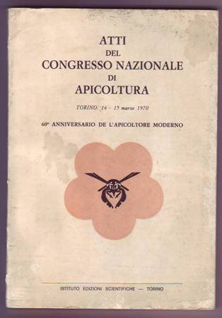 Volume in 8, brossura editoriale figurata (Simbolo, con ape e fiore stilizzati, preparato dallIstituto di Apicoltura dellUniversit di Torino per il Congresso), titolo al piatto e manoscritto al dorso, frontespizio, prefazione, elenco del Comitato, 102 pp., 1 carta dindice, 4 tavole f.t. con 16 illustrazioni fotografiche che rappresentano momenti del Congresso, losservatorio di apicoltura di Regalie e Pragelato, gli Alveari ed alcuni noti apicoltori. Il programma, i partecipanti, la cerimonia, le relazioni e gli interventi, pi varie altre notizie sul Congresso Nazionale di Apicoltura indetto a Torino nel Marzo del 1970, il cui scopo eterogeneo abbracciava tanto il mondo pratico applicativo quanto quello dello studio e della ricerca. Interessante ed in ottimo stato di conservazione, con solo lievi mende alla brossura.