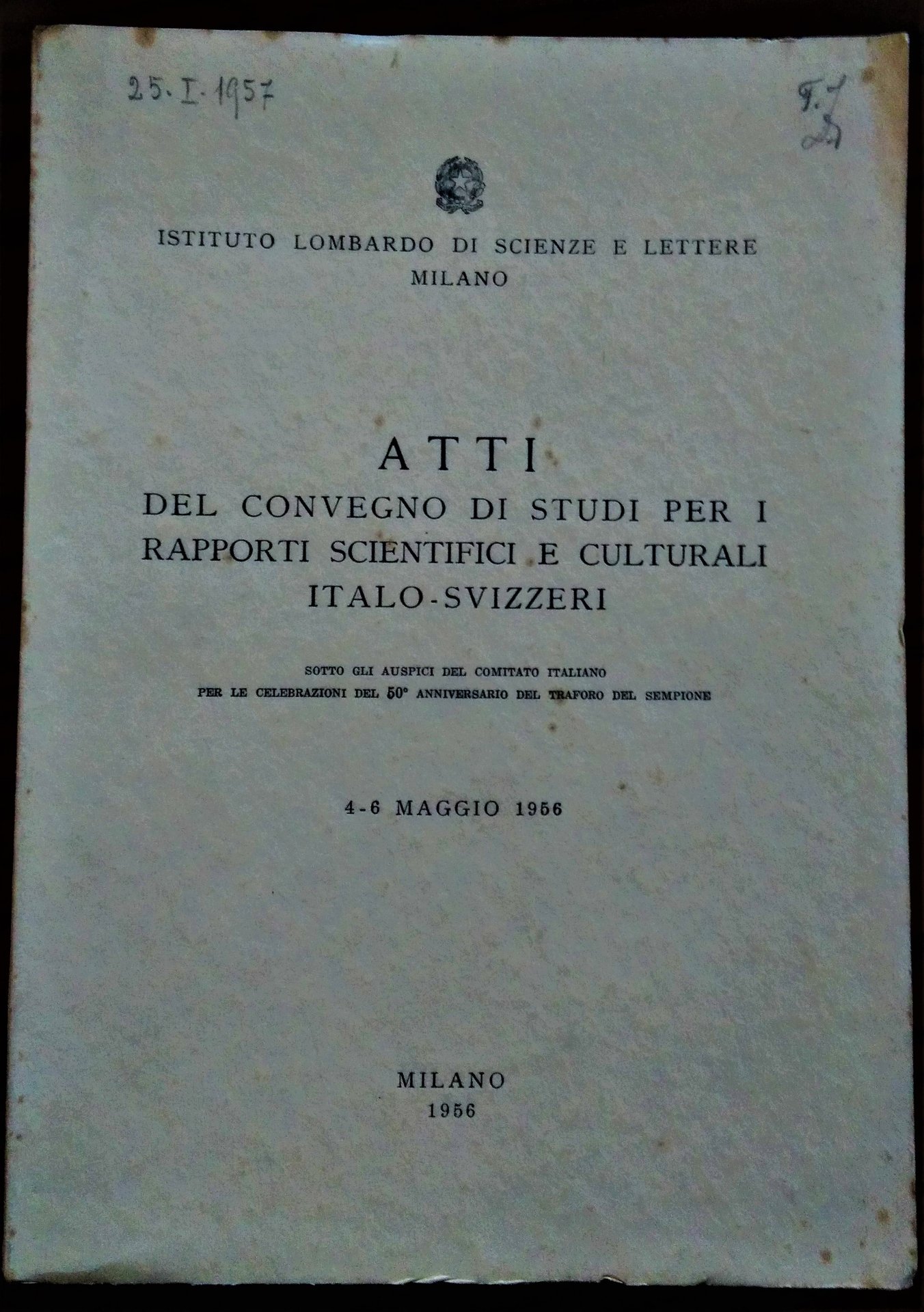 Atti del Convegno di Studi per i Rapporti Scientifici e Culturali Italo-Svizzeri. 4-6 Maggio 1956.