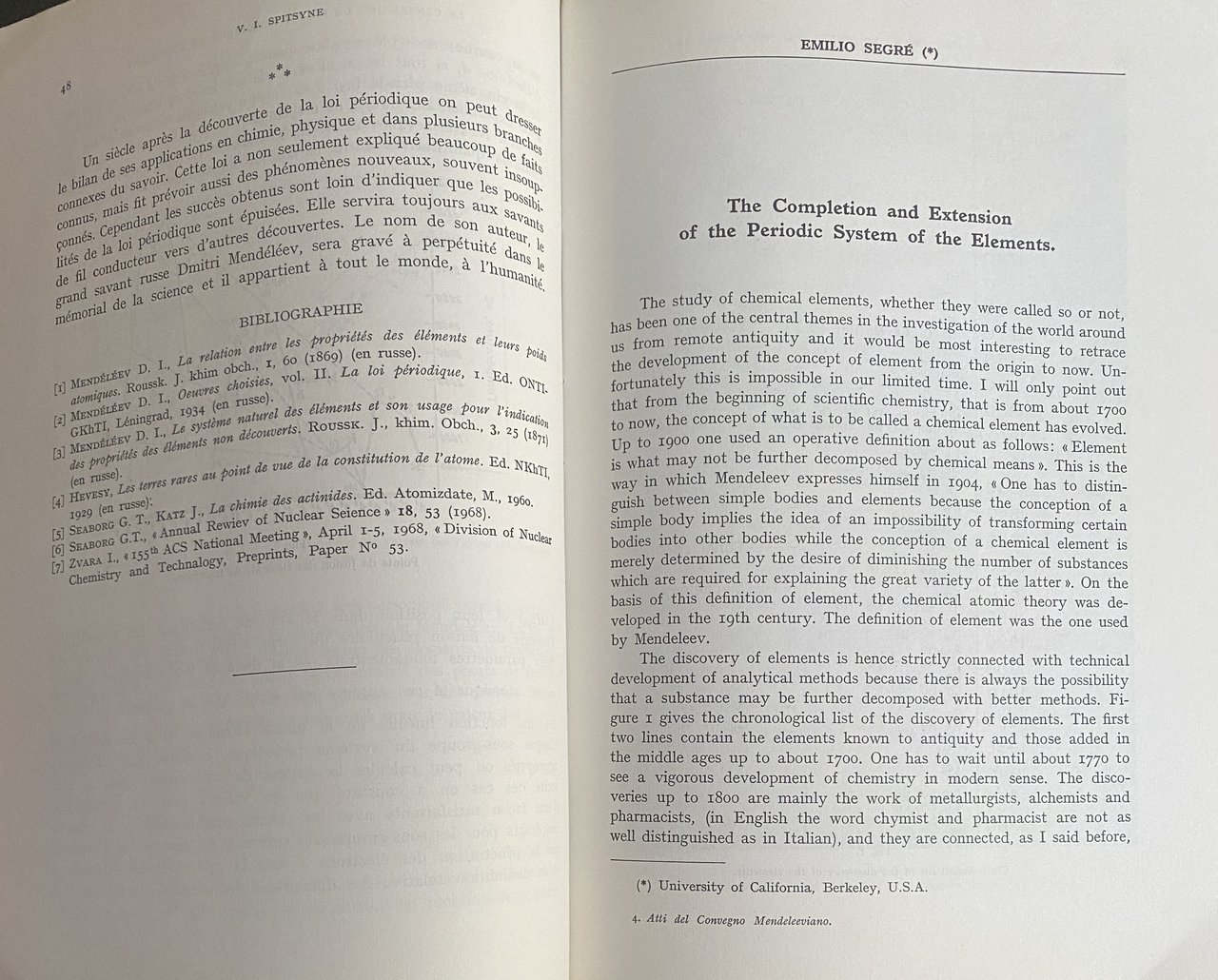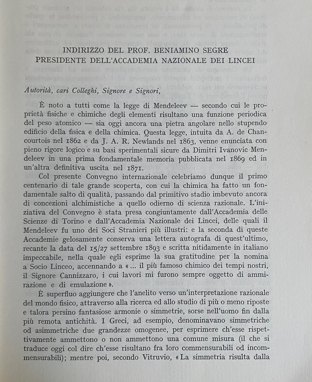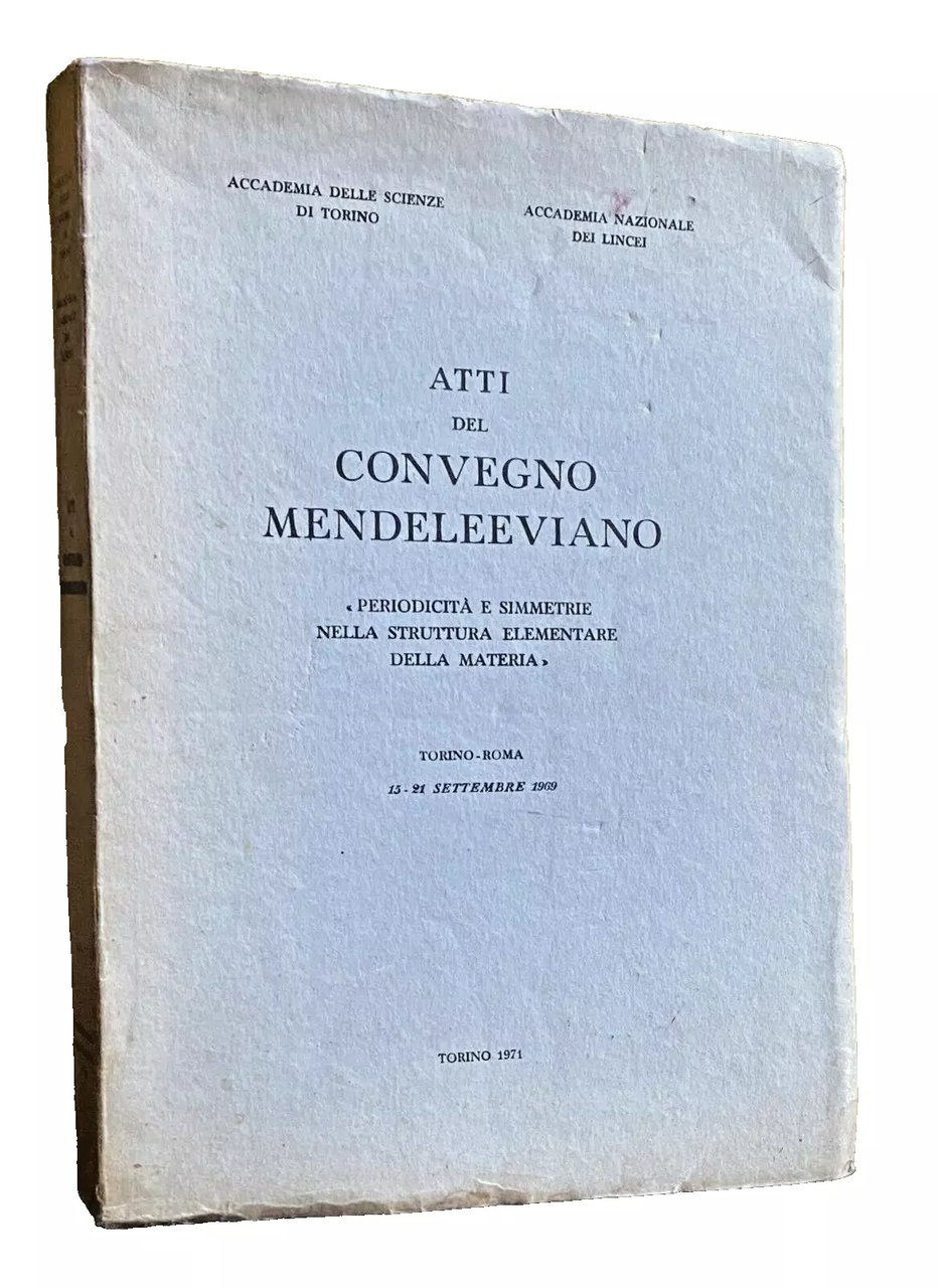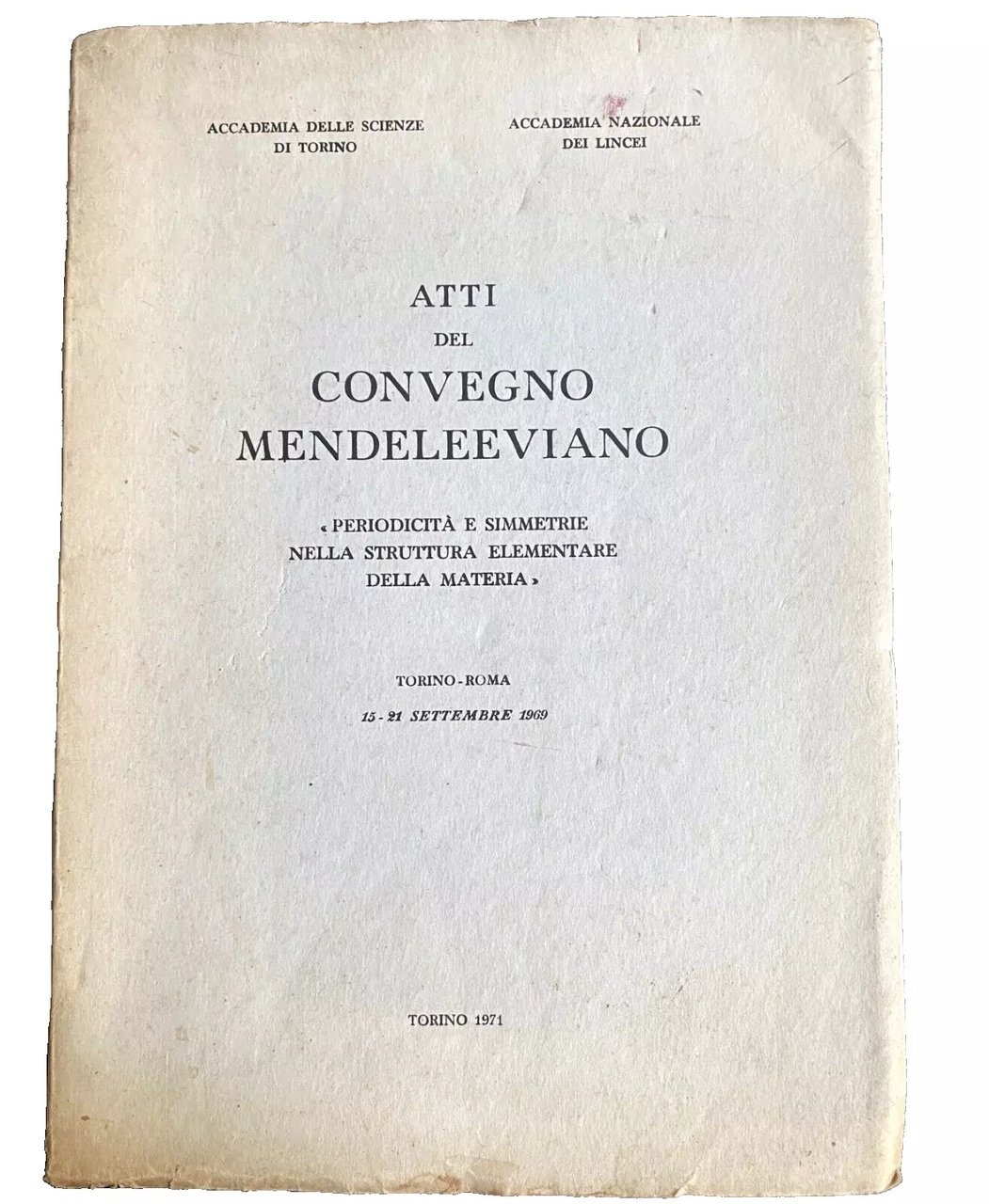 ATTI DEL CONVEGNO MENDELEEVIANO. PERIODICITÀ E SIMMETRIE NELLA STRUTTURA ELEMENTARE DELLA MATERIA. TORINO-ROMA 15-21 SETTEMBRE 1969. TRANSACTIONS OF THE MENDELEEV CONFERENCE. PERIODICITY AND SYMMETRY IN ELEMENTARY STRUCTURE OF MATTER. TURIN-ROME, 15-21 SEPTEMBER 1969