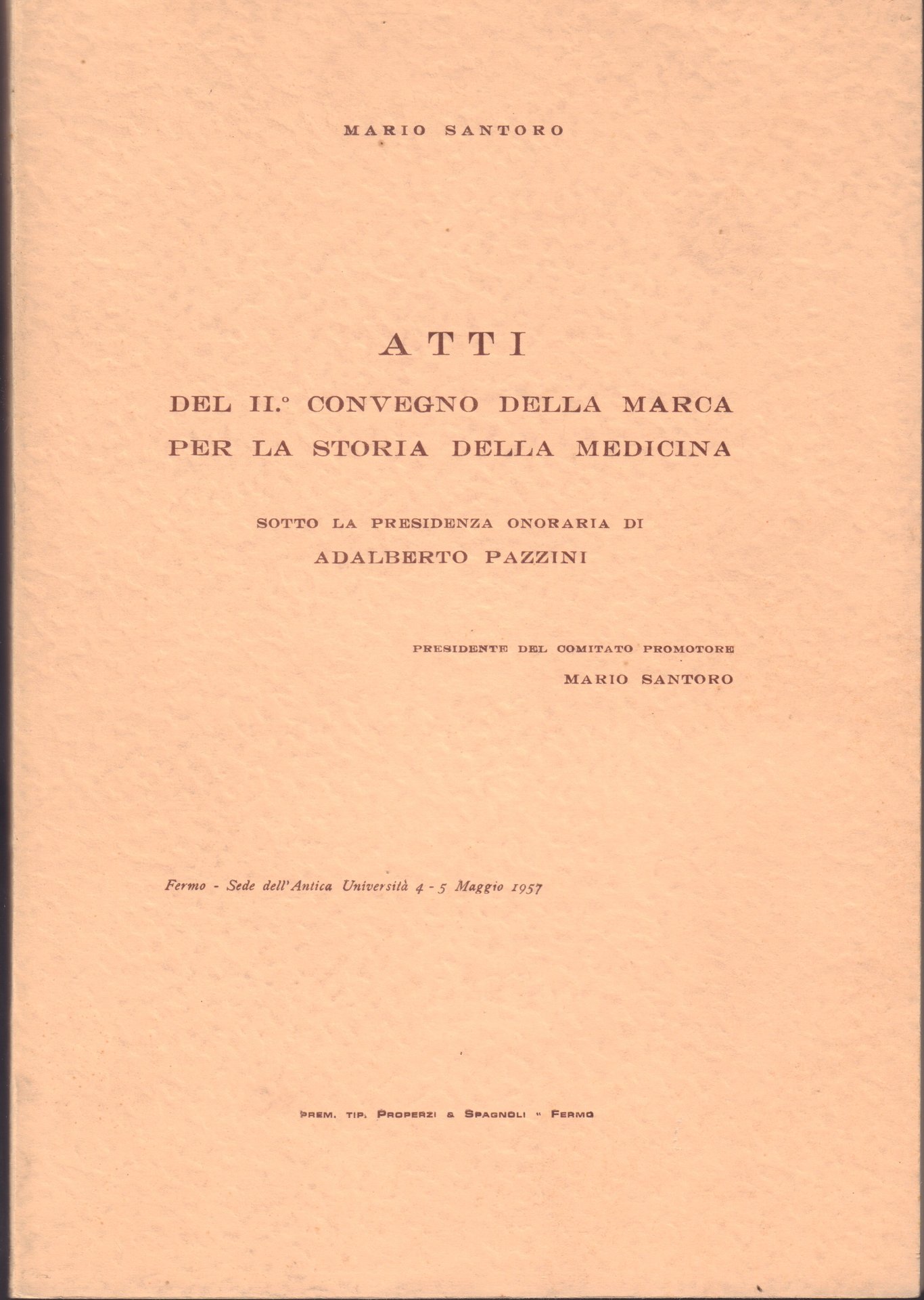 Atti del II° Convegno della Marca per la Storia della Medicina sotto la presidenza onoraria di Adalberto Pazzini