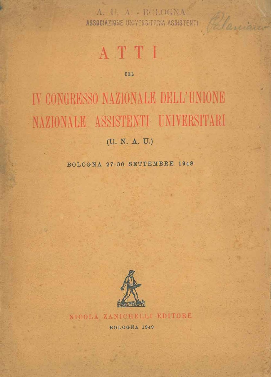 Atti del IV congresso nazionale dell'Unione Nazionale Assistenti Universitari (U. N. A. U.). Bologna, settembre 1948