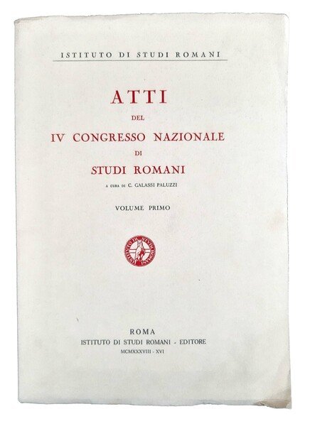 Un volume in brossura editoriale, mm 254x178; pp. XXXV, 602, [4], XIV di tav. Fa parte di Atti del IV Congresso nazionale di studi romani, a cura di C. Galassi Paluzzi - opera in 5 volumi. Rif.: IT\ICCU\BRI\0093789. OCLC, 635333300. Cond.: esemplare molto buono.