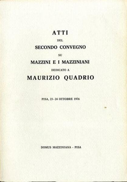 Atti del secondo convegno su Mazzini e i mazziniani, dedicato a Maurizio Quadrio. Pisa, 23-24 ottobre 1976.