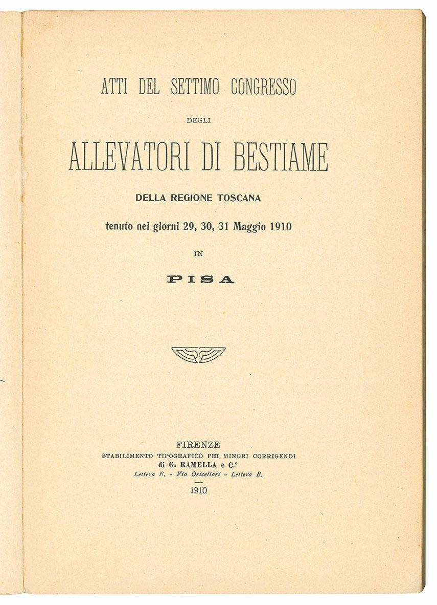 Atti del settimo congrersso degli allevatori di bestiame della regione toscana tenuto nei giorni 29, 30, 31 Maggio 1910 in Pisa.