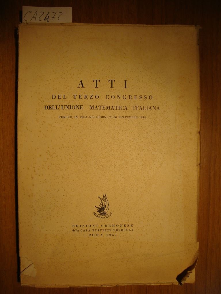 Atti del Terzo Congresso dell'Unione Matematica Italiana - Tenuto in Pisa nei giorni 23-26 Settembre 1948