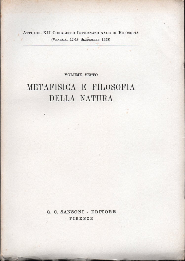 Atti del XII Congresso Internazionale di Filosofia (Venezia, 12-18 Settembre 1958). Actes du XIIème Congrès International de Philosophie. Proceedings of the XIIth International Congress of Philosophy. Volume sesto. Metafisica e filosofia della natura