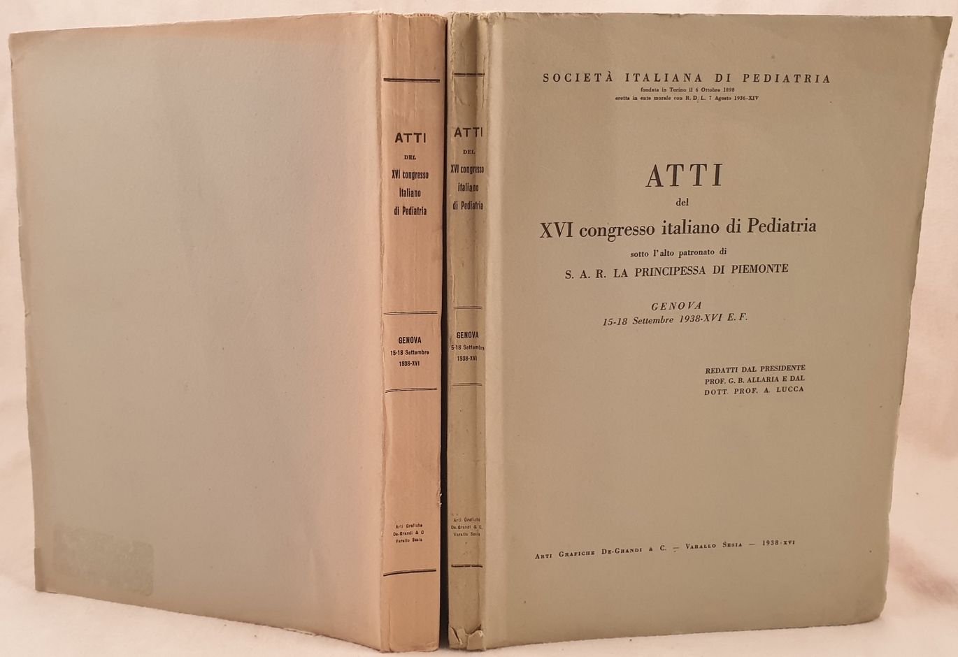 ATTI DEL XVI CONGRESSO ITALIANO DI PEDIATRIA SOTTO L'ALTO PATRONATO DI S.A.R. LA PRINCIPESSA DI PIEMONTE GENOVA 15-18 SETTEMBRE 1938 - XVI E. F. GENOVA 15-18 SETTEMBRE 1938