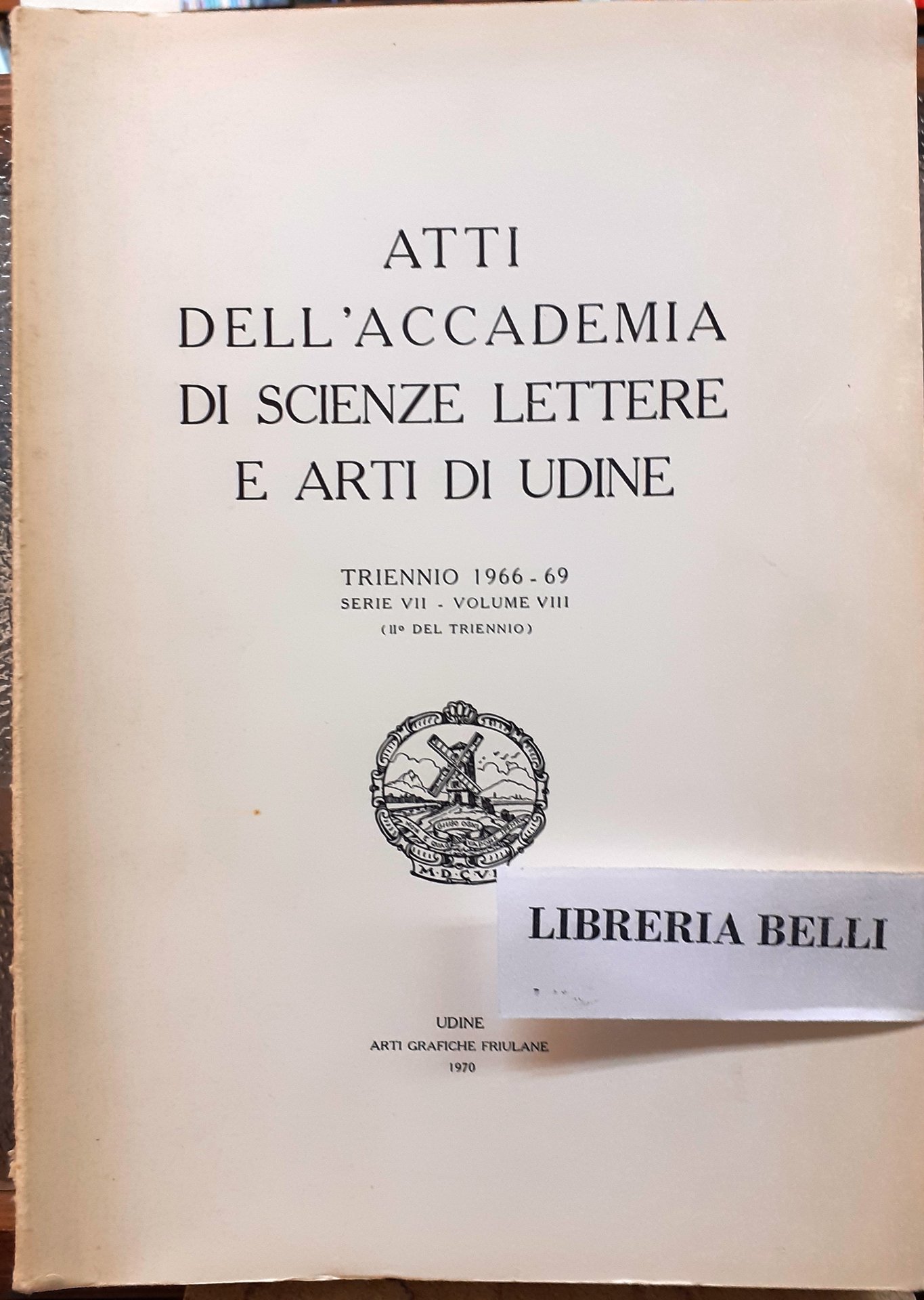 ATTI DELL'ACCADEMIA DI SCIENZE LETTERE E ARTI DI UDINE. TRIENNIO 1966-69, Serie VII-Volume VIII (II° DEL TRIENNIO).
