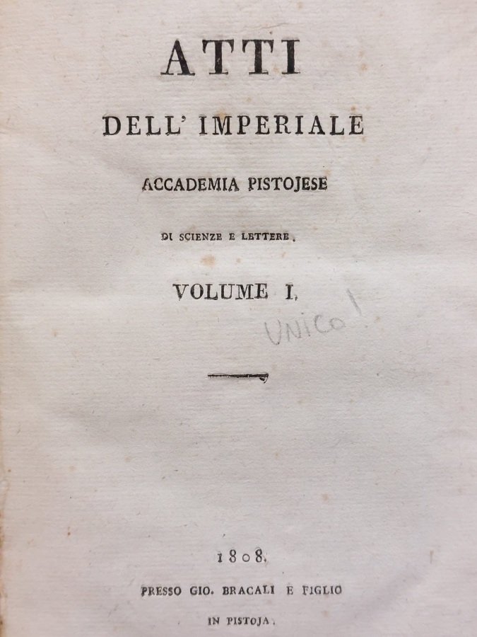Atti dell'Imperiale Accademia Pistojese di Scienze e Lettere. Volume I [e unico].