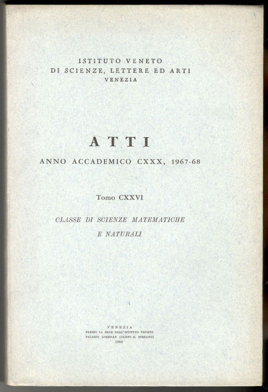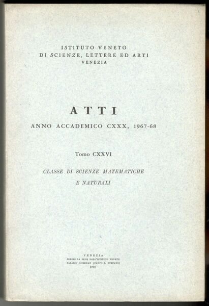 Atti dell'Istituto Veneto di Scienze, Lettere ed Arti. Classe di scienze fisiche, matematiche e naturali. Tomi CXXVI - CXLIV (19 volumi)